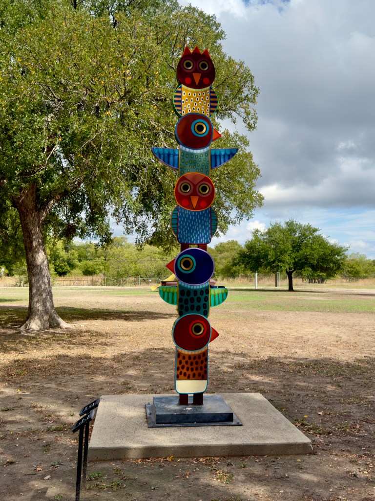 “Been Fish’en” – Artist: Joe Barrington“Bird Totem” – Artist: Terrell Powell“Lampasas Furniture” – Artist: Carolann Haggard“El Rey” – Artist: Tim Glover“Barn Martian”“Portal to the Springs” – Artist: David Hickman“Current” – Artist: Jennifer Cannon“We Are Family”“Rustle” – Artist: Jim Huntington