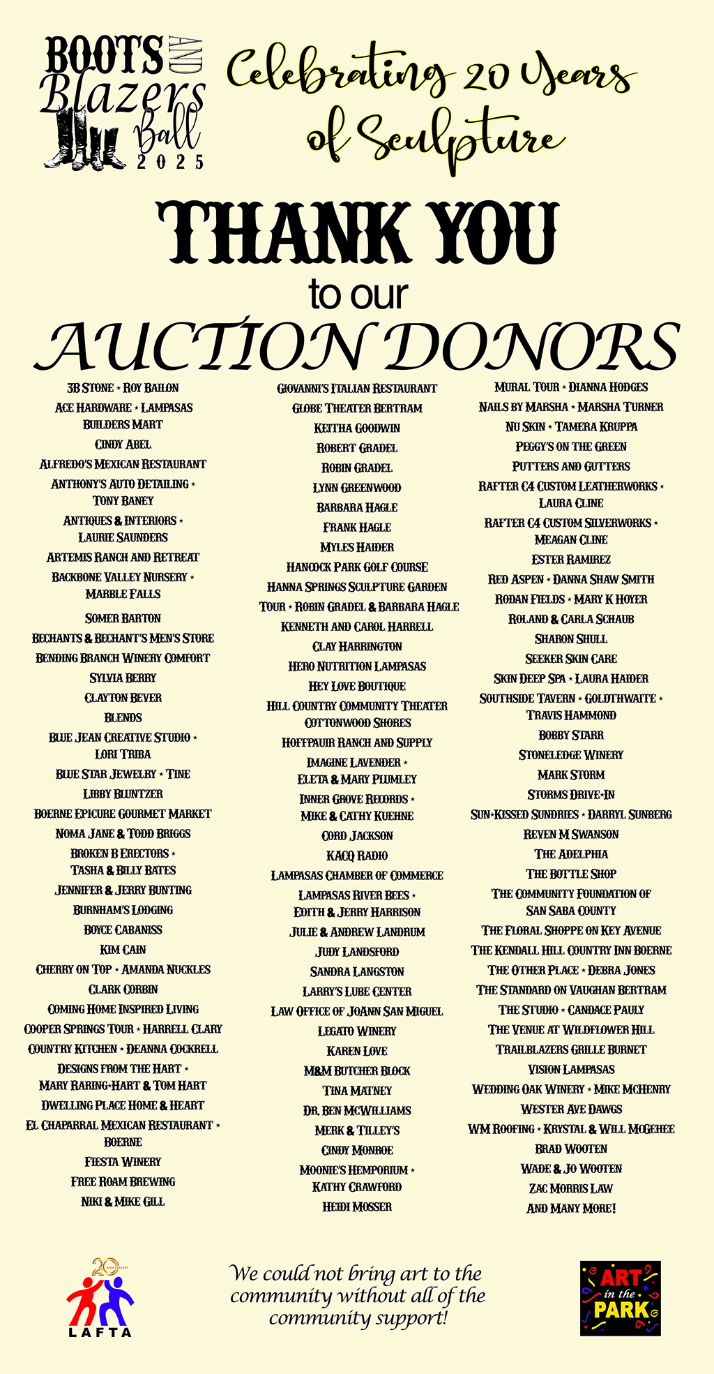 LAFTA 2025 BOOTS AND BLAZERS BALL DONORS