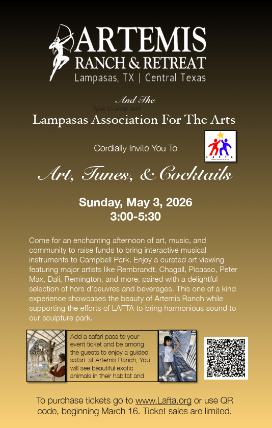 The Lampasas Association for The Arts is a 501(c)(3) nonprofit organization dedicated to “expanding opportunities for everyone to experience the arts.”